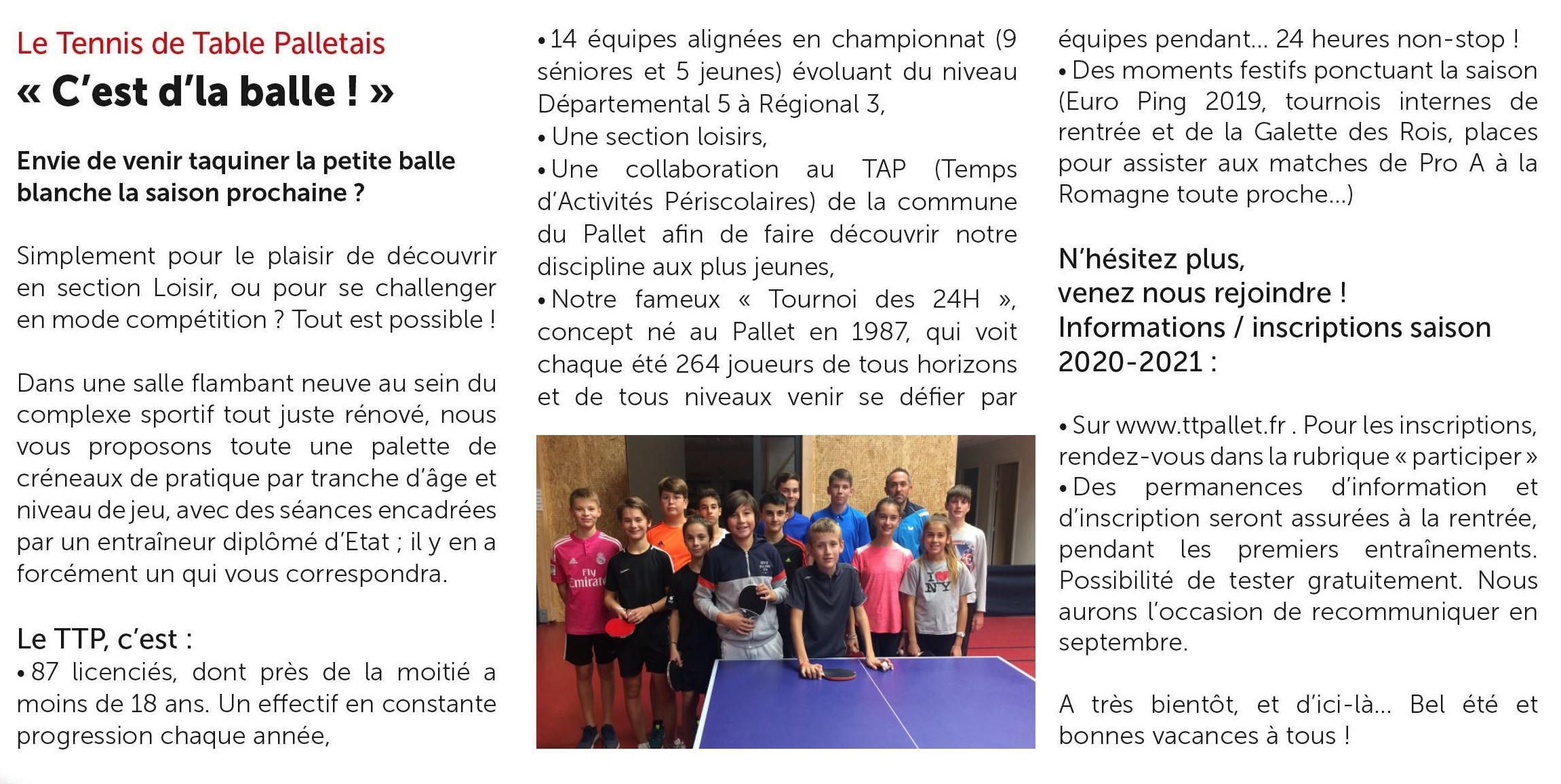 TENNIS DE TABLE PALLETAIS - LE CLUB DES 24 HEURES