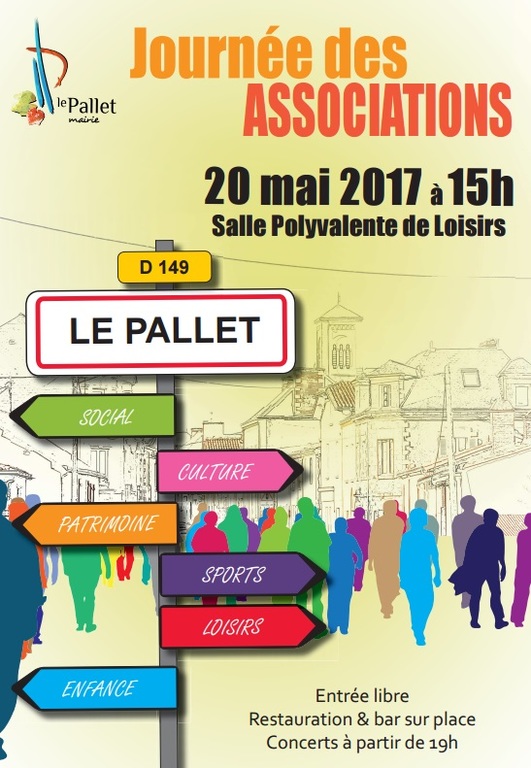 La Journée des Associations aura lieu le samedi 20 mai à 15h00 à la Salle Polyvalente de Loisirs. Bar et restauration sur place. Renseignements au 02 40 80 40 24 ou par mail à contact@mairie-lepallet.fr